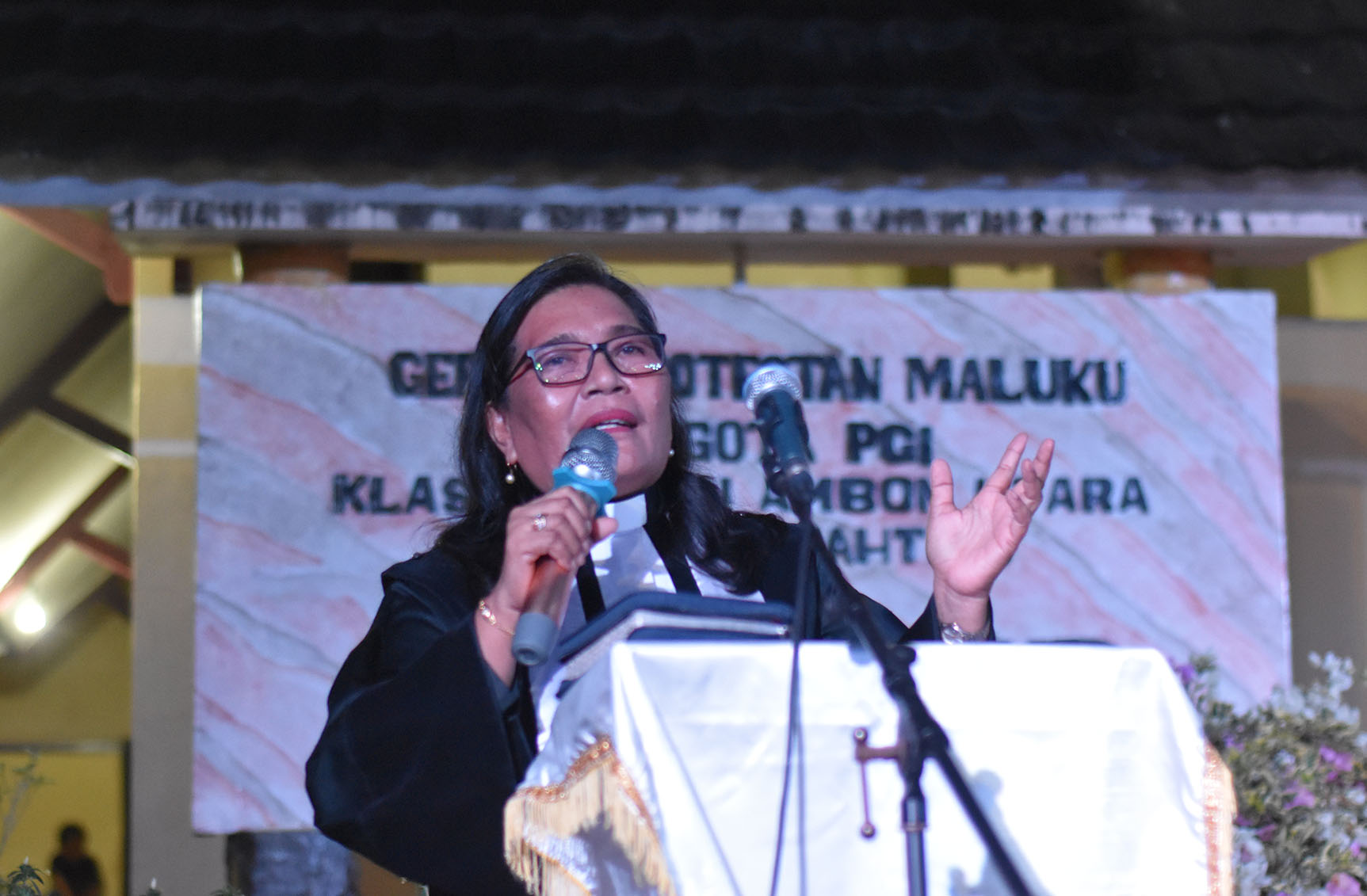 Pdt Ny. Leny Bakarbessy dalam khotbahnya di kebaktian itu mengingatkan jemaat untuk menjauhi hal – hal yang memicu keserakahan sebagai pemecah persatuan umat. “Jika Yesus tidak bangkit, maka ada 2 hal yang sia – sia. Beriman kepada Yesus itu sia – sia, dan pemberitaan kepada Yesus pun sia -sia. Jika dua hal ini tidak dijalankan oleh manusia, maka saya tidak tahu dunia ini akan jadi apa. Jika Yesus tidak bangkit, maka kepercayaan kepada Yesus hanyalah kekosongan, dan pemberitaan tentang Yesus hanya berdasrkan fiksi, dan hanya berupa ide dan gagasan yang kosong. Di sini sebetulnya Paulus mau mengatakan kepada kita perbedaan iman Kristen dengan yang lainnya. Inilah keunikan dalam iman percaya kepada Yesus dan kita sangat beruntung. Kita tak hanya beruntung tapi juga memperoleh keselamatan jika percaya dan beriman kepadanya. Sebab apa yang telah dikerjakan dengan kematian dan kebangkitanNya, tidak hanya membuat kita bangga dan besukacita. Apa yang dikerjakan Kristus, telah mentransformasi hidup kita menjadi lebih berkualitas; Allah telah membawa kita jauh lebih berdaya guna sebagai saksi – saksinya yang semakin efektif untuk memberitakan tentang kebangkitan itu. Injil Matius 28 : 11 – 15 mengisahkan sebuah fakta yang sangat miris, Ketika kebangkitan Yesus didengar oleh mereka yang berjubah Rohani dan sangart spiritualis, maka mereka mengadakan pemufakatan tentang kisah pencurian, bahkn mereka rela melakukan penyogokan untuk mendukung rekayasa kisah pencurian jenazah itu, bahkan mereka pun memberikan jaminan untuk bertanggung jawab jika gubernur di daerah itu mendengar rekayasa itu. Penulis injil Matius, telah memperlihatkan sikap para imam kepala dan tua – tua bangsa Yahudi yang telah menujukan sikap etis yang buruk karena telibat dalam rekayasa ketidak adilan dan pembohongan public. Mengapa sikap mereka seperti itu? Tema kita menunjukan hal itu KESERAKAHAN.”