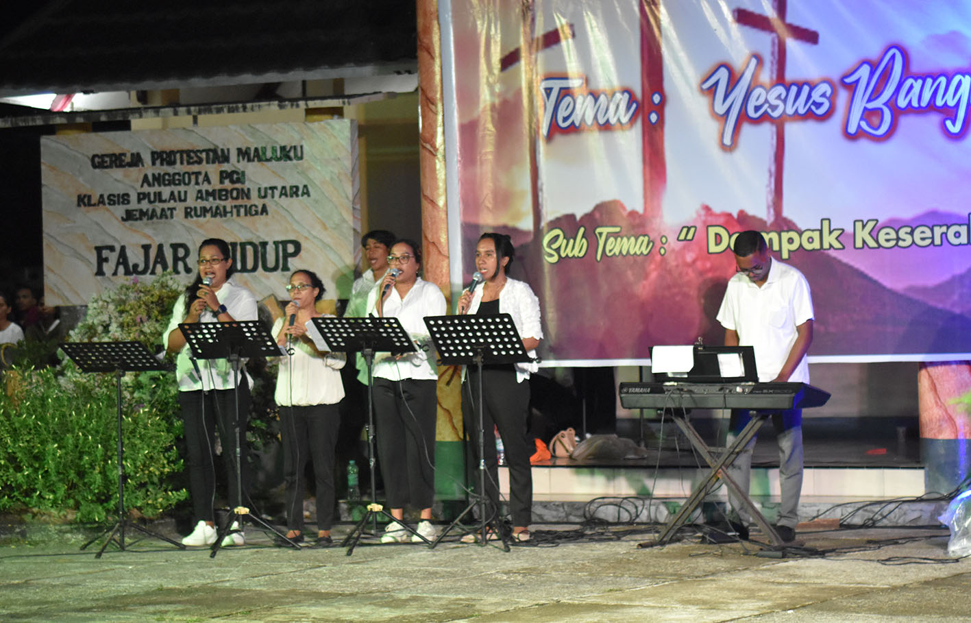 Rumahtiga – Jemaat GPM Rumahtiga bersukacita dalam kebaktian pagi perayaan Paskah Kristus (31|3|2024). Kebaktian yang berlangsung di Pelataran Gedung Gereja Fajar Hidup itu berlangsung meriah yang dihadiri jemaat setelah mengikuti kebaktian persiapan paskah di tiap sektor dan sejumlah agenda yang berlangsung sejak bebarapa hari sebelumnya.